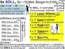 Die 6x SOLL lt. Bild GR4-6 sind identisch mit sechs (ÖkoSolidar)Demokratie-Zielen. Die 6x SOLL sind Inhalt im Bild Rat-2, die das GUTE LEBEN in SOZIALER SICHERHEIT und iNTAKTER NATUR, im sich "erfüllenden Leben" verbessern.